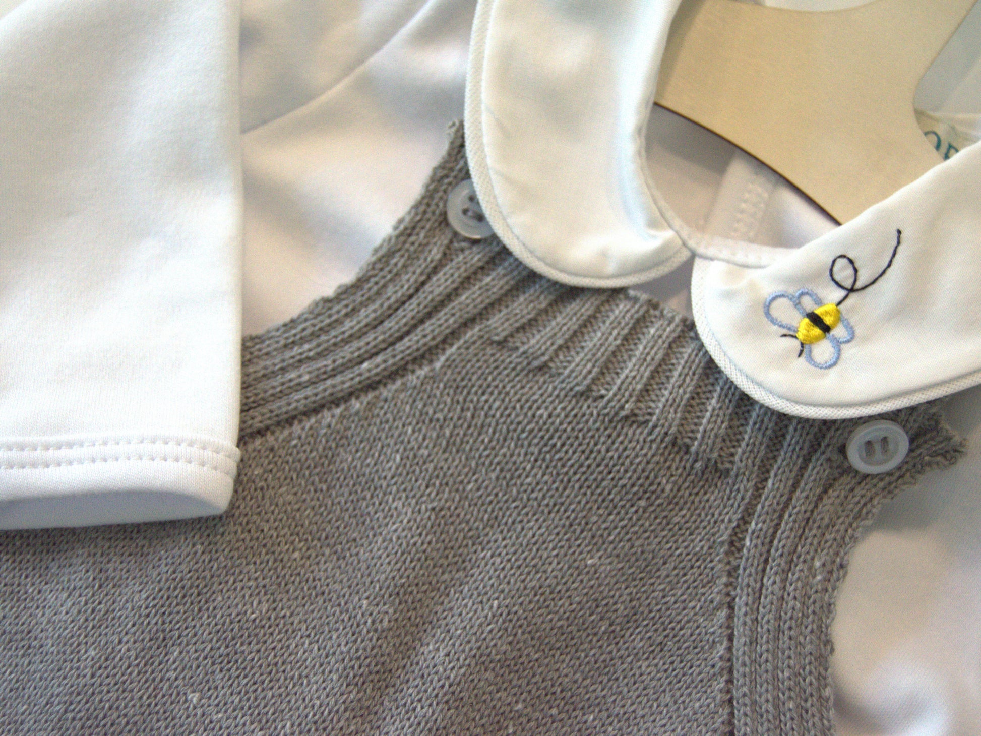 This charming knitted overall showcases classic craftsmanship with its beautifully textured knit pattern and timeless button details. The sophisticated gray tone brings versatile elegance to your baby's wardrobe while the traditional knit construction creates visual interest and depth. Crafted from a premium 50% cotton and 50% acrylic blend, this overall provides hypoallergenic comfort with excellent breathability, ensuring your little one stays cozy and comfortable throughout the day.