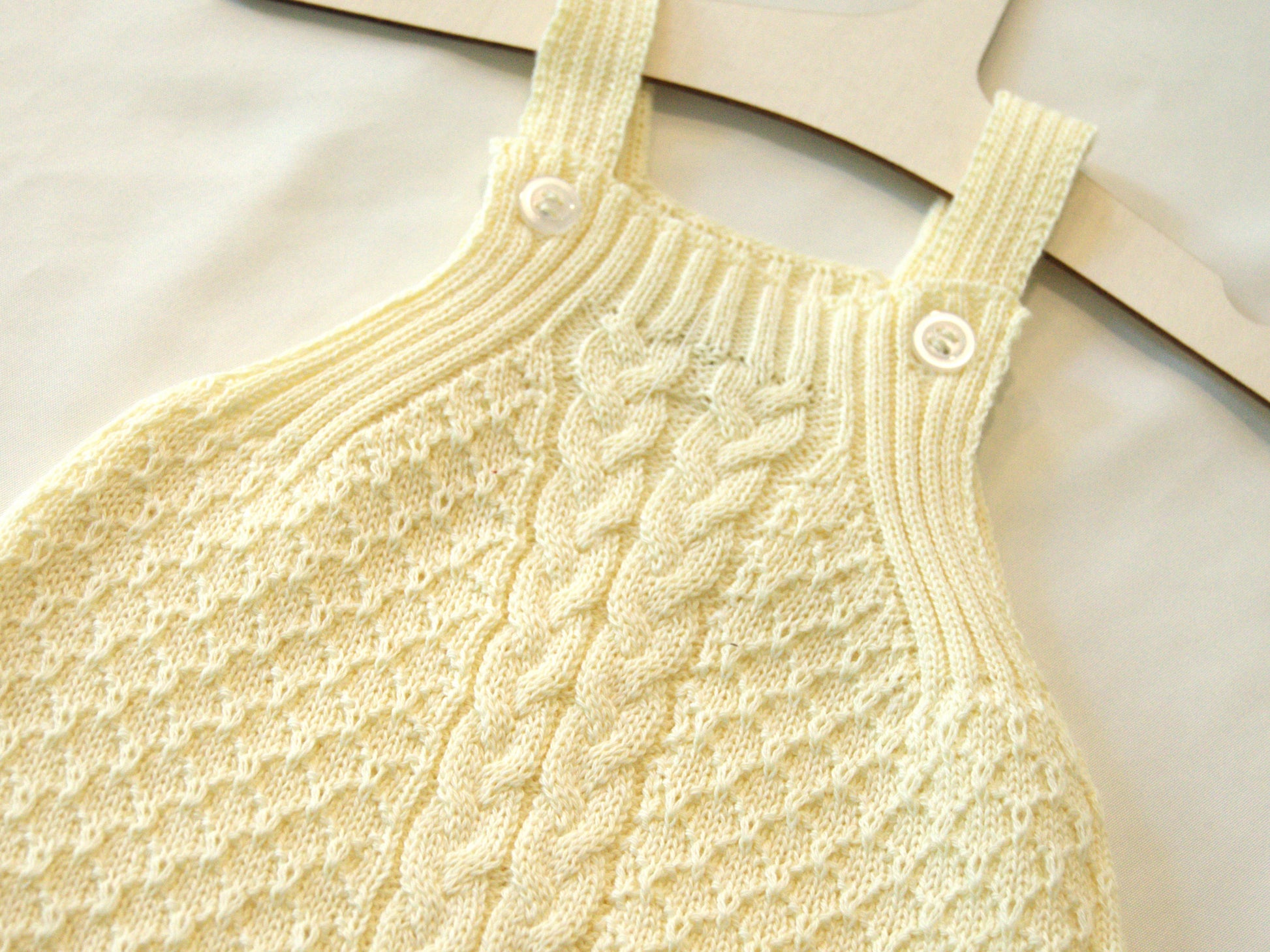 This enchanting knitted overall brings vintage-inspired charm to your baby's wardrobe with its intricate lace-like pattern and timeless design. The detailed knit work creates beautiful texture and visual interest while maintaining the comfort and flexibility essential for active little ones. Crafted from a premium 50% cotton and 50% acrylic blend, this overall offers hypoallergenic softness with excellent breathability, ensuring all-day comfort whether worn alone or layered over bodysuits.